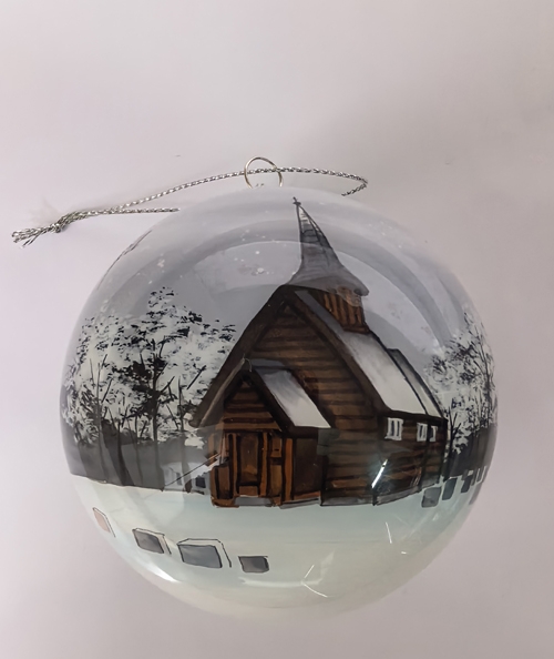 Julekulen er håndmalt på innsiden av glasset.